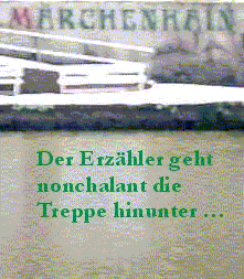 XXIX. Der sich im Wasser spiegelnde Erzähler geht nonchalant die Treppe herunter und verliert sich
